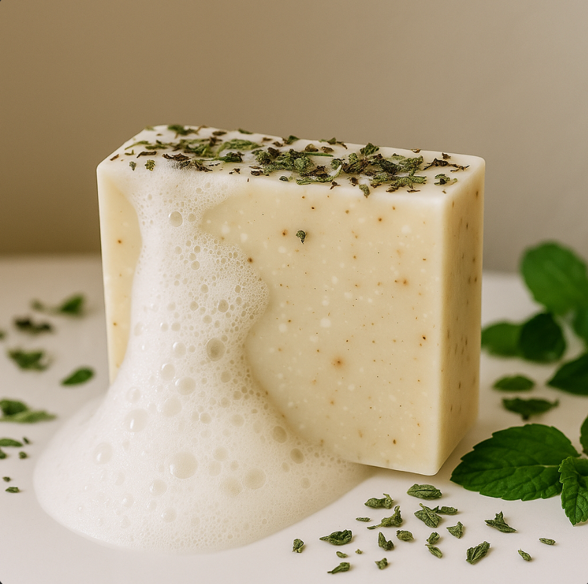 Crafted using a heritage method, fresh whole goat's milk transforms these botanical oils into a luxuriously cooling lather that soothes sensitive skin while delivering mental clarity you can feel. This isn't just mint soap - it's a thoughtfully composed blend that calms inflammation, refreshes tired skin, and creates that perfect moment of restoration your day needs.